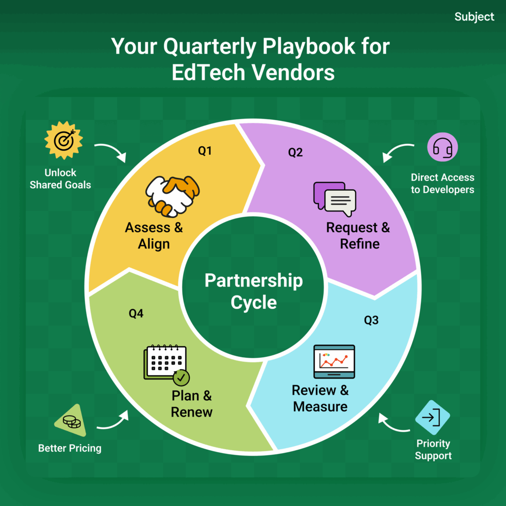 The districts winning this game operate on the same rhythm as their strategic planning: quarterly cycles that align vendor development with district goals.